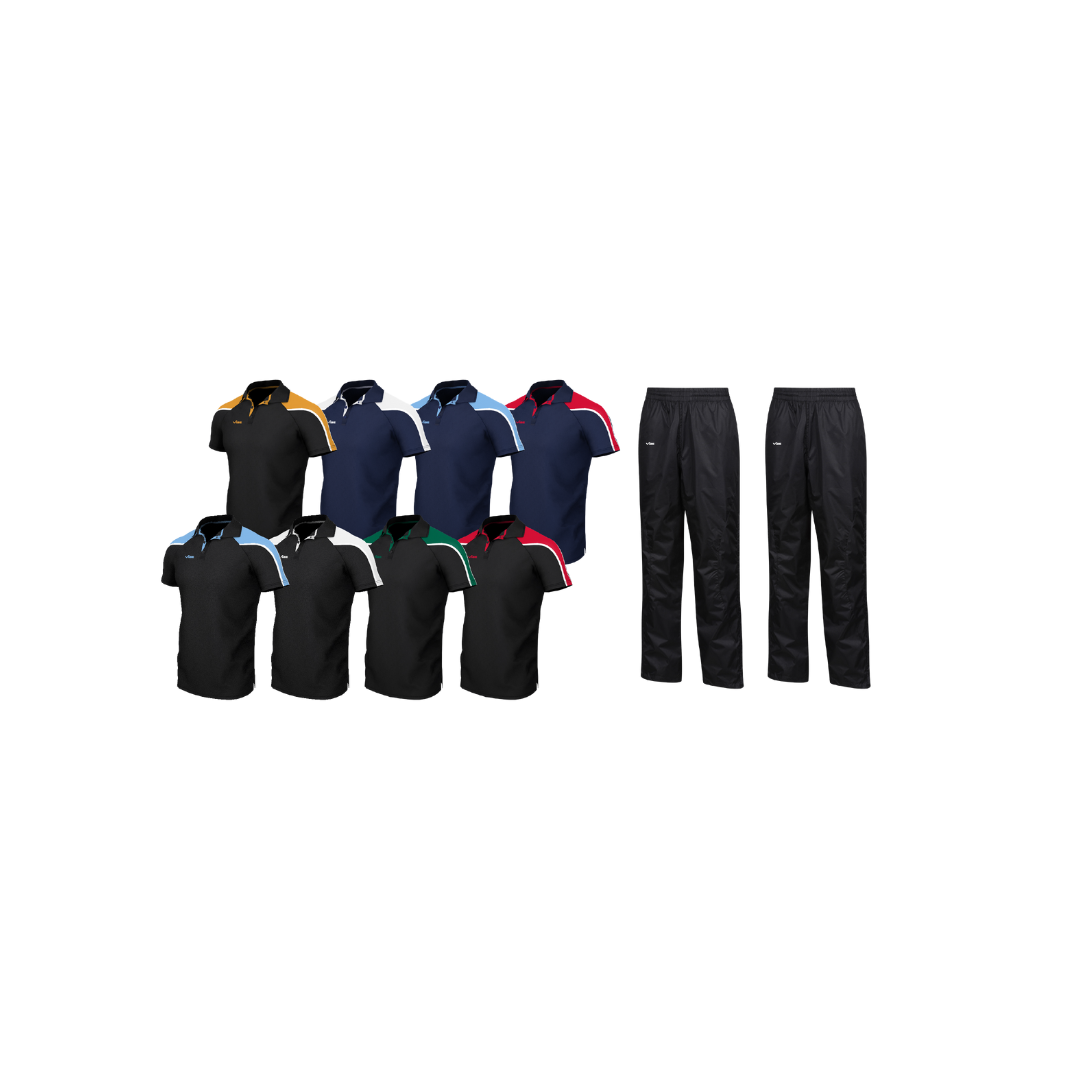 The essential selection! A great range of coloured shirts and matching trousers for white ball cricket. Available in Black or Navy. Shirts feature contrast panels in an attractive array of popular colours. Available from stock for quick turnaround of club orders and ideal for club shops.